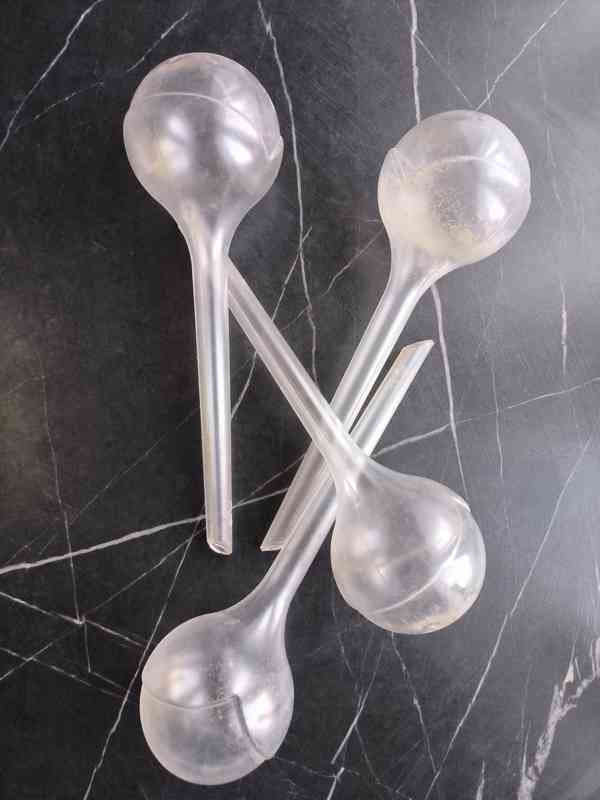 Nabízím použité zavlažovací umělohmotné baňky do květináče o obsahu 0,5 l - kus za 50,- (max 16 kusů) - Kladno, Praha.