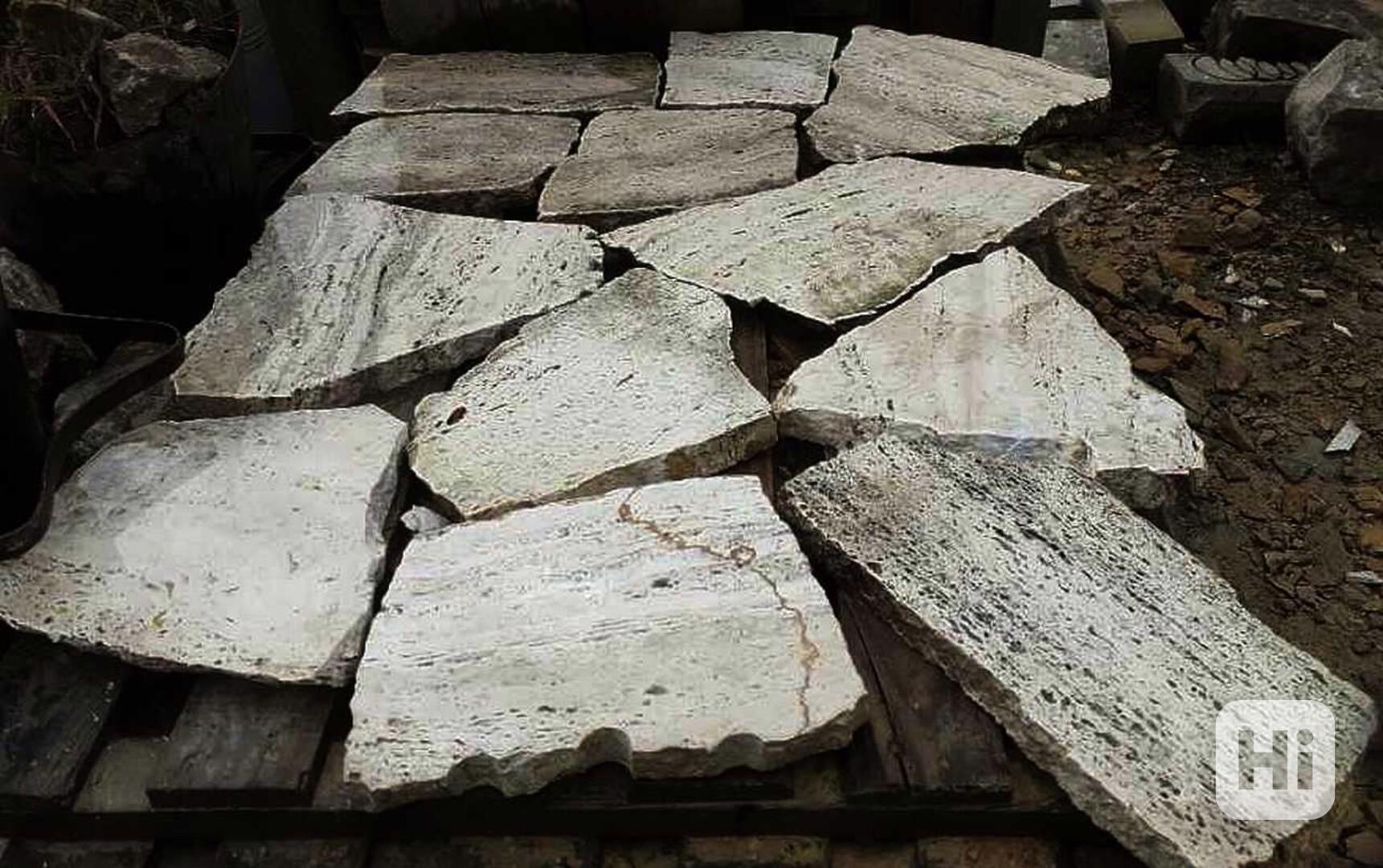 Kamenné šlapáky - nášlapy jsou vytvořeny z italského přírodního travertinu.