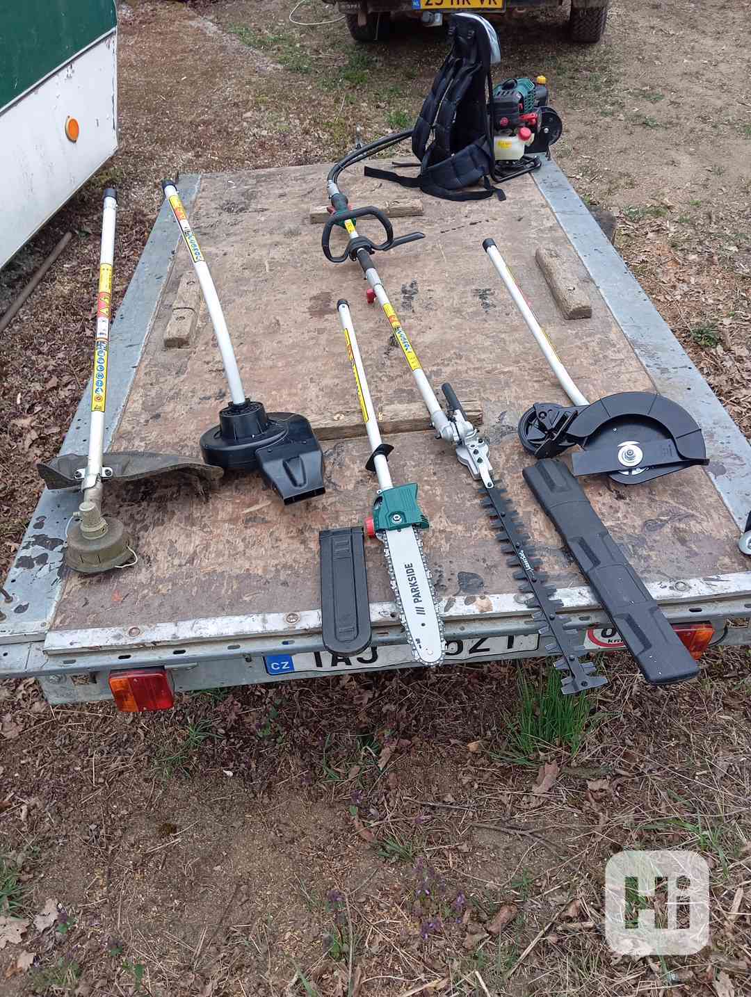 Plotořez,pila,strunová sekačka,fukar a jakýsi kypřič trávníku.