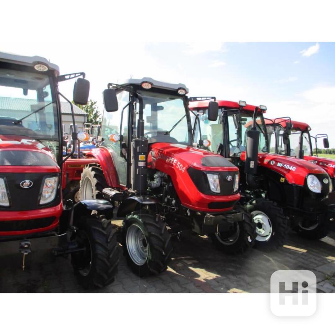 Traktor 504, motor Laidong Euro 5, nová klimatizovaná kabina Shuaike, synchronizovaný podvozek TE8 + 8, silný zvedák tlaku, radiální pneumatiky 260/70R16 + 320/85R24, přední blatník, dvě sady hydraulického výkonu, 9palcová dvojčinná spojka, sedadlo Grammer, zadní protizávaží 31 X2, kyvadlová trakce, šestipólový vývodový hřídel PTO 540/1000 Parametry traktoru Model 504 Typ pohonu 4x4 Celkové rozměry D׊×V (mm): 3550x1730x2710 Rozchod kol (mm) Přední 1000-1700 Zadní 1300-1700 Rozchod kol (mm) 1880 Světlá výška (mm) 355 Jmenovitá trakční síla (N) 7800 Konstrukce Hmotnost (kg) 1900 Teoretická rychlost (km/h) Vpřed 2,4632,73 Vzad 2,1528,69 Motor Specifikace Model 4L28V50 Typ 4-válcový vertikální, vodou chlazený, čtyřtaktní Emisní norma EV Max. točivý moment (N.m) 172 Otáčky při max. točivém momentu (ot./min) 1800 Jmenovitý výkon (kw/hp) 36,8/50 KLimatizace a vzduchové brzdy v cenně. Spodní + Horní závěs. Cena bez DPH